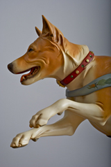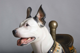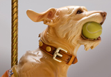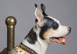 Buster is a serious guard dog, dressed in armor leafed with yellow gold, white gold and copper leaf.